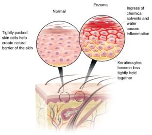 It is very important to know that modern medicine has no appropriate treatment for eczema. The whole thing boils down to over-the counter products, which are Steroids, such as Hydrocortisone, Cortisone 10, Cortaid or Calamine Lotion. You should know that they actually do more damage to your skin than good. Layers of the skin are getting thinner, the skin ages more rapidly (e.g. wrinkles appear before their time), blood vessels in the skin dilate and your immune system weakens.